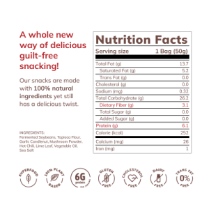 Fermented Soybeans, Tapioca Flour, Seaweed Seasoning, Garlic, Candlenut, Lime Leaf, Coriander, Sea Salt.