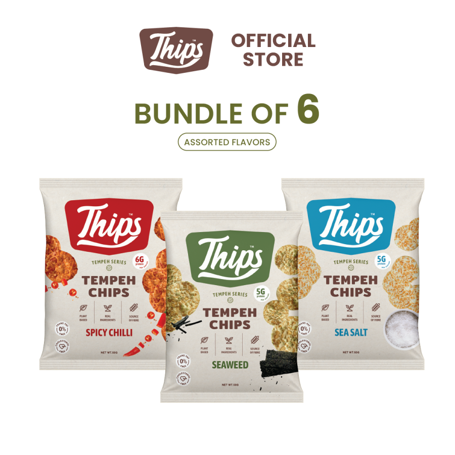 A flavor packed snack with a combo of salty umami taste of seaweed topped onto our delicious tempeh chips to satisfy your cravings in every bite of Thips Seaweed Tempeh Chips!