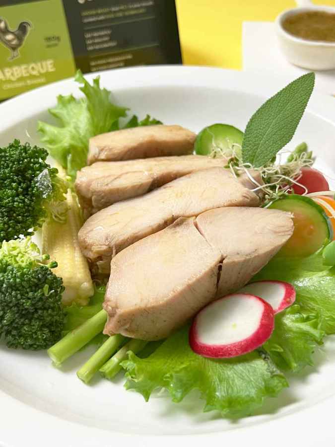 Sous Vide Cooked: We use the sous vide method to cook our chicken breast. This unique cooking technique ensures the chicken is cooked evenly while retaining its juices and flavors.