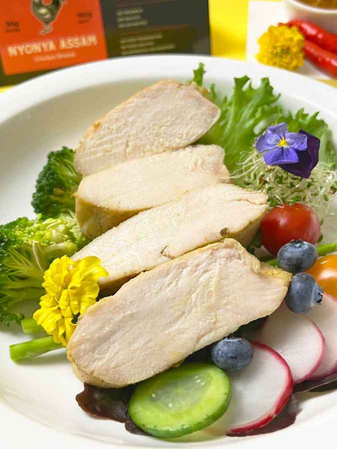 Sous Vide Cooked: We use the sous vide method to cook our chicken breast. This unique cooking technique ensures the chicken is cooked evenly while retaining its juices and flavors.