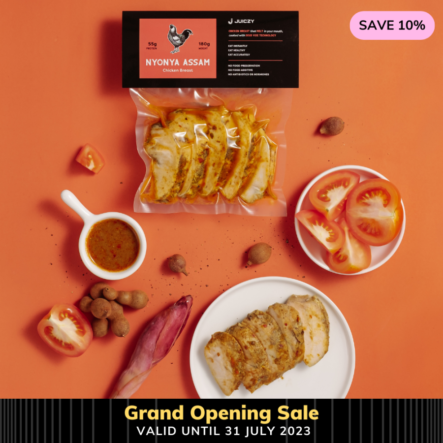 Juiczy's Nyonya Assam Chicken Breast is a dish with a sweet and sour, slightly spicy flavor that is irresistibly appetizing. The slow-cooking technique ensures the chicken breast remains tender. The unique combination of tamarind's sourness and sweetness creates a memorable taste. This flavorful dish stimulates the appetite and leaves you wanting more.