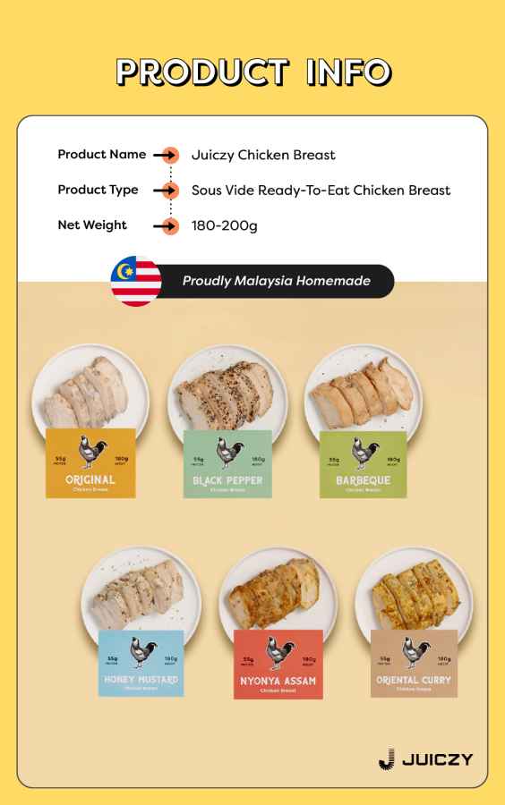 Juiczy's Nyonya Assam Chicken Breast is a dish with a sweet and sour, slightly spicy flavor that is irresistibly appetizing. The slow-cooking technique ensures the chicken breast remains tender. The unique combination of tamarind's sourness and sweetness creates a memorable taste. This flavorful dish stimulates the appetite and leaves you wanting more.