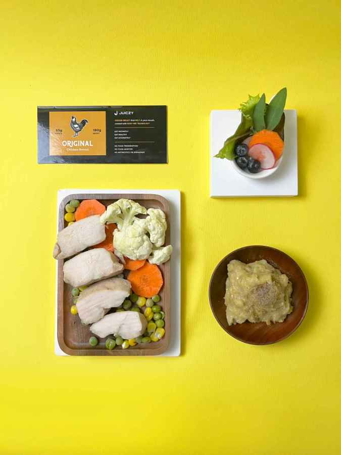 Indulge in the Juiczy Original Chicken Breast Bento, a satisfying and convenient meal option. Our tender and flavorful Original Chicken Breast, cooked sous vide for perfection, takes center stage in this bento. Paired with handcrafted mashed potatoes and a selection of fresh vegetables, this bento offers a balanced and nutritious meal.