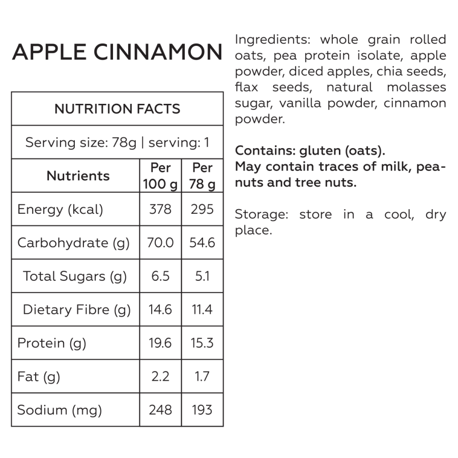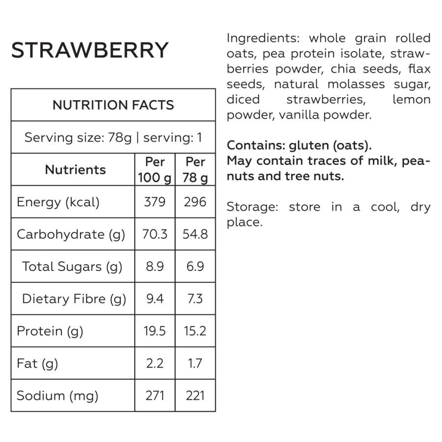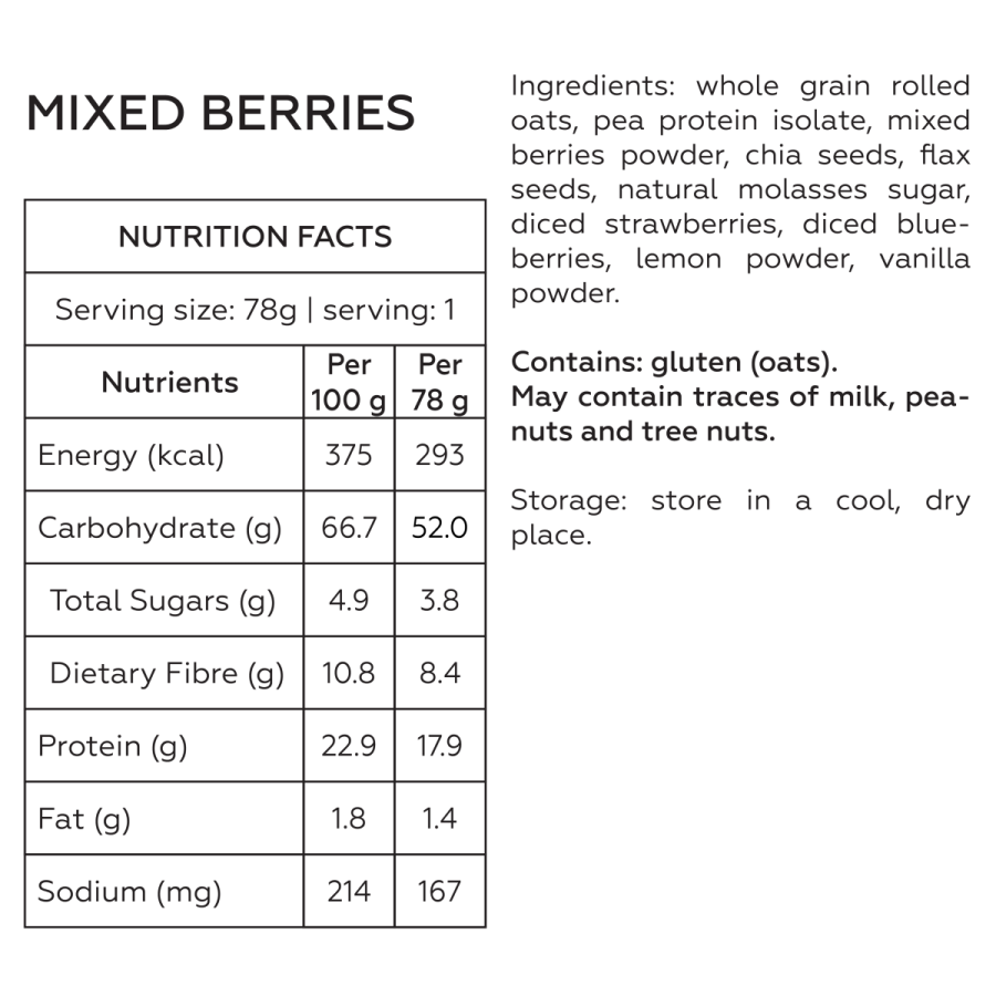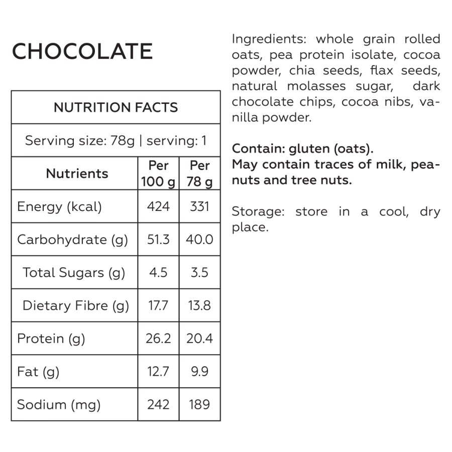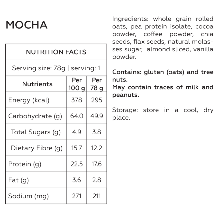 ✅ Whole grain rolled oats, plant-based protein, chia seeds, flaxseeds, natural fruits and many more.